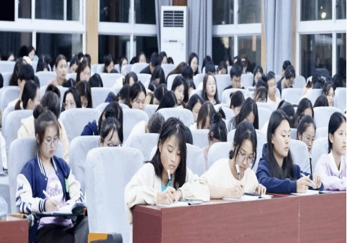 为了拓展学生的视野,增强学生对学前教育专业的了解,进一步落实高校与幼儿园协同育人的举措,教育学院学前教育专业于11月2日晚在博思楼105教室开展了主题为《幼儿园班级区域材料投放与指导》的校外专家讲座。本次讲座由铜仁市万山区第一幼儿园园长刘娟担任主讲人,学前教育系主任杨瑛主持,学前教育专业2021级、2022级、2023级200多名学生参与了此活动。