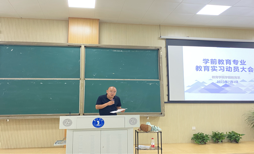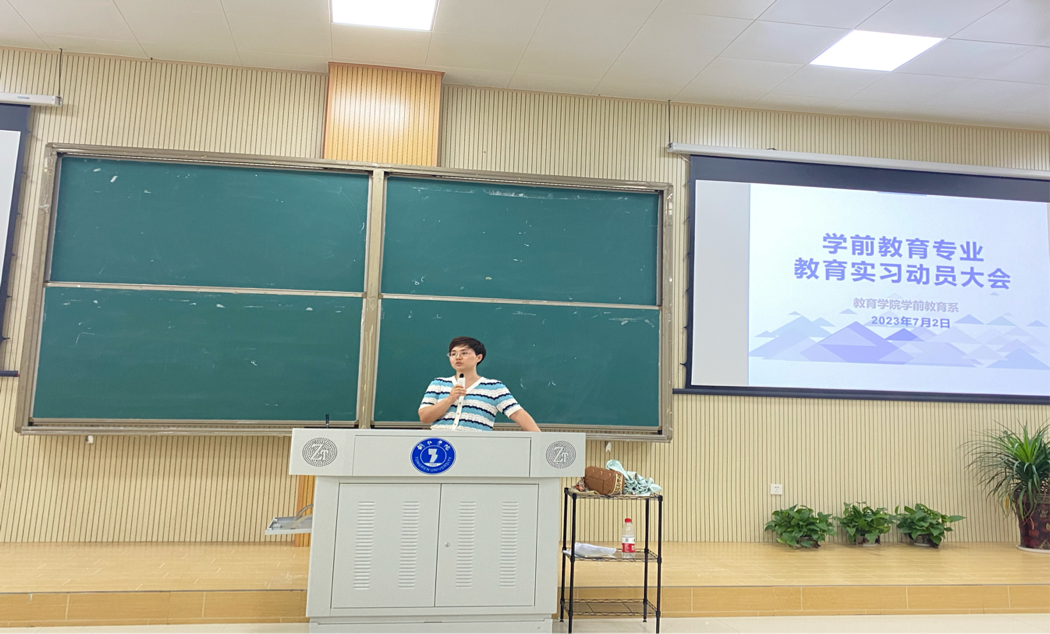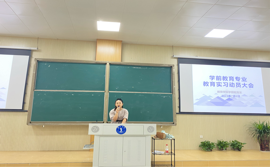 为了让2024届学前教育专业学生提前了解教育实习的目的、任务及要求,促进教育实习工作的顺利开展,7月2日,学前教育系在博思楼103召开了教育实习动员大会,学前教育系主任杨瑛、实训教研室主任杨松慧、2024届毕业班班主任、实习带队教师及2020级全体学生参加会议。