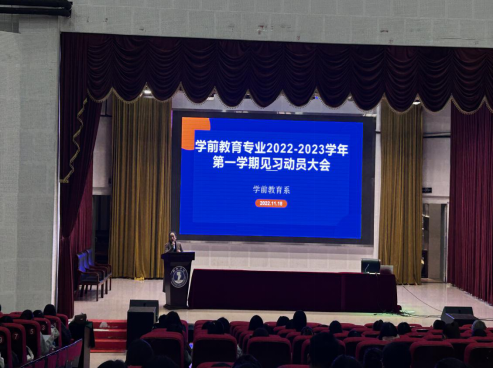 为了加强学生对见习(研习)任务的了解,促进见习(研习)目标的达成,近日,学前教育专业在人文生态馆召开了2022-2023学年第一学期见习动员大会。会议由学前教育系主任杨瑛主持,学前教育专业实训教研室主任杨松慧、2020级及2021级全体学生参加了本次会议。