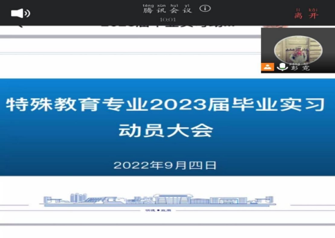 根据《美加墨世界杯官方网站关于做好2023届本科生毕业实习工作的通知》的相关要求,为了顺利推进教育学院特殊教育专业2023届毕业实习工作,结合世界杯官网疫情防控措施实际情况,特殊教育专业于2022年9月4日晚上通过腾讯会议在线召开了2023届毕业实习动员大会。参加此次会议的有特殊教育陆艳、刘方林、彭霓、宋健、王诗尧等老师,以及2019级特殊教育专业全体学生。