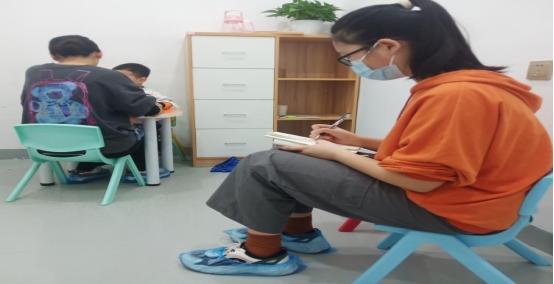 碧江区萤火虫教育咨询有限公司的儿童教育主要针对自闭症、发育迟缓等特殊儿童,通过感统、运动、语言、认知等各方面实施训练,提升儿童的综合能力。此次见习实践活动同学们将对这些儿童的康复训练进行观摩、学习、研讨。到达萤火虫教育机构后,同学们在机构李娜老师的带领下,分组跟负责的老师进入个训室、精细室、游戏室或感统室进行观摩学习。在观摩学习中,同学们认真听讲、仔细观察、详细记录,向老师请教与学习针对不同类别特殊儿童的教育实践与操作性知识。除此之外,老师让同学们各带一名特殊儿童,参与特殊儿童的课堂活动及游戏中去,与特殊儿童开展简单的互动、沟通和相处,提供了一个对特殊儿童深入了解的机会。