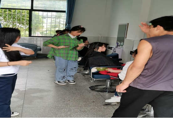 活动伊始,同学们在铜仁市特殊教育学校滕敏老师的安排下,分组进入培智、聋部的各个班级进行观摩学习。在观摩过程中,同学们认真聆听,仔细观察,详细记录,学习针对不同类别特殊儿童的教育实践与操作性知识。除此之外,同学们还利用课间休息时间,积极地与学校的专业老师进行沟通交流,放学后也会与特殊儿童的家长进行沟通交流,深入了解特殊儿童身心发展特征和家长需求,为探索家校融合的特殊教育模式奠定基础。特别的是,铜仁市特殊教育学校为促进学生发展,开展了富有特色的中职教育,基本上每天下午聋部中职班的学生会到实训楼进行职业技能的学习,有书法、绘画、洗车、理发等职业技能。