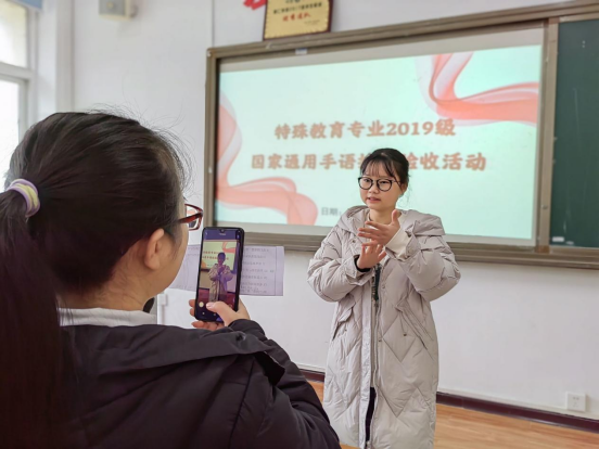 为加强学生专业技能训练,提高特殊教育专业学生专业技能,特殊教育系分别于2021年12月17日、12月22日、12月24日在明理楼B407教室开展2021年度特殊教育专业技能验收活动,验收对象为2019级特殊教育专业全体同学。