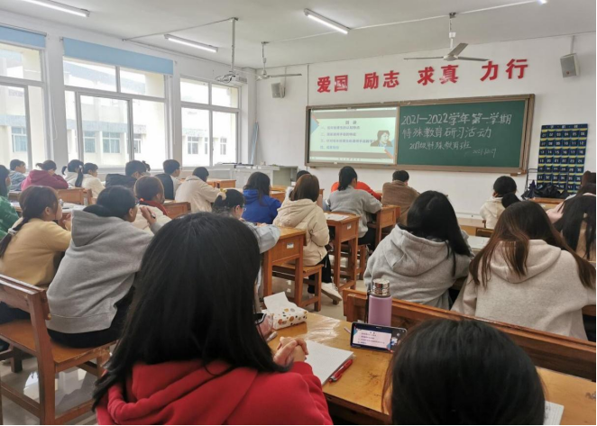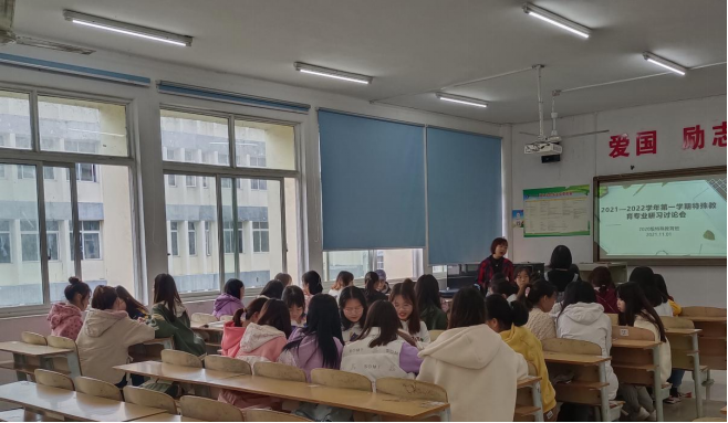 为加强学生专业学习,培养学生研习能力,为落实《美加墨世界杯官方网站特殊教育专业人才培养方案》及《美加墨世界杯官方网站特殊教育专业教育研习大纲》要求,教育学院特殊教育系于2021年11月1日—2日就全省第二期国家通用手语和通用盲文推广培训内容开展研讨。参与研讨有陆艳、彭霓、宋健老师和2019级、2020级特殊教育专业全体学生,彭霓老师担任研讨主持人。
