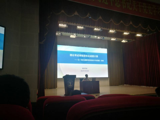 此次培训会主要从宏观和微观两个视角对师范认证中课程达成度的计算进行阐述与实际操作演示。从宏观的角度出发,张杰主任就“聚焦评价:建立产出评价机制,实现培养质量提升”为主题,为大家讲解了课程达成度计算的理论依据和宏观操作。张思华老师和杨瑛老师则从微观的角度分别讲授了“实践课程达成度计算——以美术学专业课程为例”以及“理论课程达成度计算——以《幼儿园教育活动设计与实施》为例”,两位老师,分别以两门具体课程为例现场展示了达成度计算的操作方法。