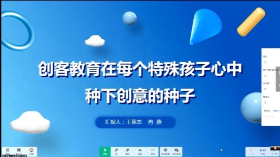 铜仁市特殊教育学校市级高中信息技术骨干教师王章杰老师和铜仁市第六中学市级初中信息技术骨干教师冉燕老师,为大家分享了创客教育在特殊教育中的开展情况。