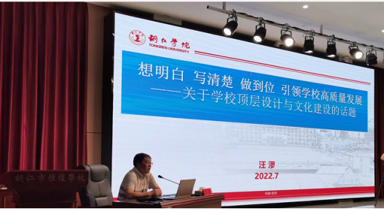 7月29日,教育学院承担的铜仁市万山区2022年中小学校长(园长)能力提升研修项目在万山区雅礼学校如期举行,100多名万山区中小学准校长、准园长参加了集中研习。