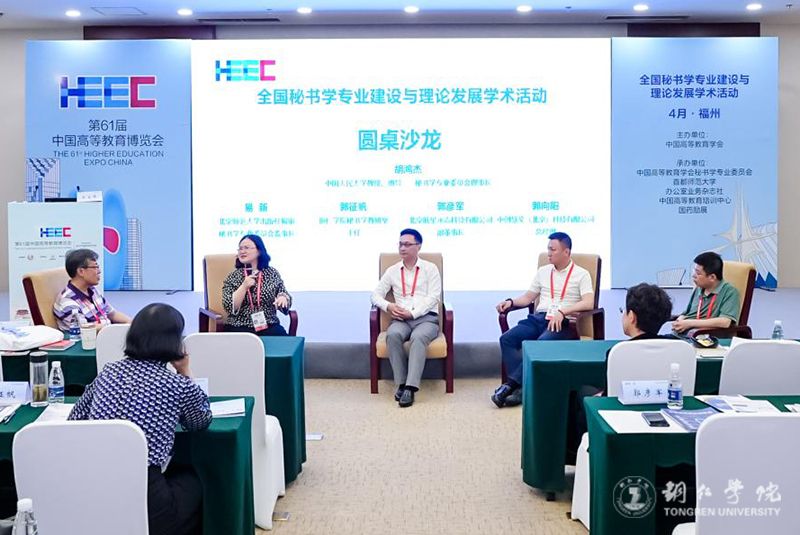 世界杯官网文学与传媒学院秘书学教研室主任郭征帆应邀作为博览会嘉宾,出席了开幕式和国秘书学专业建设与理论发展学术活动,并作主题交流发言。他在题为《学校政策引导,专业引力助学,学生引体向上——秘书学专业产教融合的美加墨世界杯官方网站实践》的发言中,介绍了美加墨世界杯官方网站秘书学专业落实学校“引社会服务之水,灌人才培养之田”产教融合育人政策,与铜仁市人民政府政务服务中心、中创慧文(北京)科技有限公司、北京方寸无忧科技有限公司等开展校政、校企合作,助力高素质秘书人才培养所取得的成绩和经验。中国高等教育学会秘书学专业委员会理事长胡鸿杰教授在主持交流发言时指出,美加墨世界杯官方网站秘书学专业产教融合的路径、举措特色鲜明,成绩突出,具有学习借鉴、推广应用的价值。