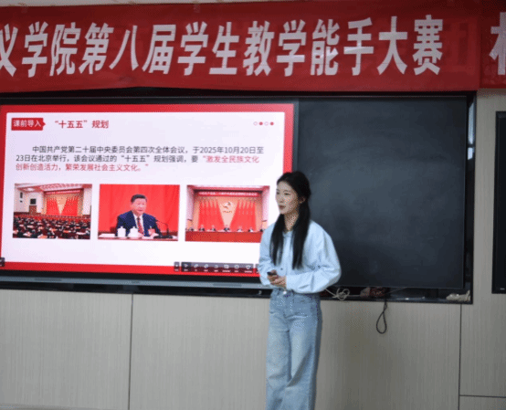 经班级初选,12名选手晋级决赛。决赛现场,选手们结合案例解读、情境模拟等方式,将理论知识与现实热点结合,既展现了思政学科的思想深度,又通过互动设计让课堂生动鲜活;部分选手还融入“大思政课”理念,将红色资源、社会实例融入教学,凸显了思政课的育人价值。