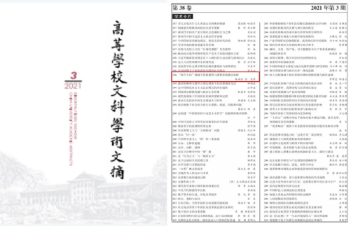 被《高等学校文科学术文摘》2021年第3期摘编(截图)