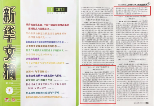 被《新华文摘》2021年第11期论点摘编(截图)