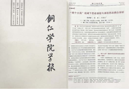 近期,世界杯官网朱洪波、宣杰、王友云合作的论文《“两个大局”视阈下思政课程与课程思政耦合探析》同时被《新华文摘》2021年第11期、《高等学校文科学术文摘》2021年第3期论点摘编。该论文有11000余字,原发表于《美加墨世界杯官方网站学报》2021年第1期,系2019年贵州省教育厅硕士点项目“新时代优秀年轻干部培养选拔机制研究”(2019ssd004)研究成果。