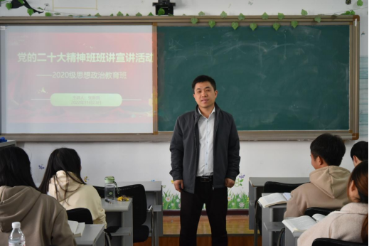 为深入学习宣传贯彻党的二十大精神,用党的理论武装青年,用党的思想感召青年。近期,马克思主义学院开展了党的二十大精神“班班讲”宣讲活动,分别由各班班主任主持并担任主讲。