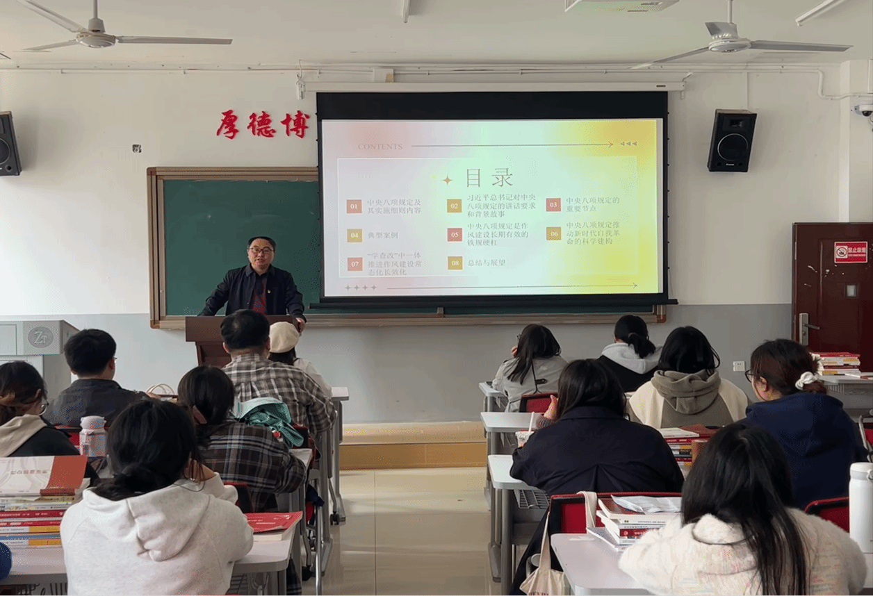 张江林强调深入贯彻中央八项规定精神学习教育是加强党风廉政建设、严明党的纪律的重要举措,对于规范党员干部行为、树立良好形象具有重大意义。他要求全体学员要将中央八项规定精神内化于心、外化于行,不仅要在思想上高度重视,更要在行动上自觉践行,争取早日加入党组织,以实际行动发挥党员的先锋模范作用。