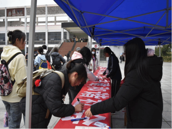 活动过程中,工作人员为同学讲解了宪法有关知识,且呼吁我们青年认真学习宪法知识,坚定宪法自信,弘扬宪法精神,共同努力建设和谐社会。学习了解后的师生纷纷表示收获颇多,并依次在横幅上签下了自己的名字,表达出师生们知法懂法守法的决心通过学习宪法可以提高我们的法律意识,正确维护权利与履行义务,积极投身于社会主义法治建设。