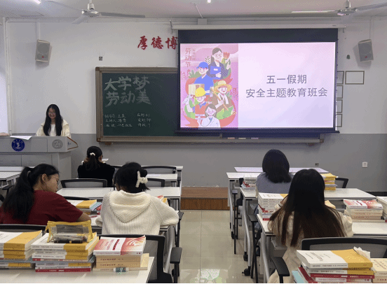 班会上,各班主讲人围绕交通安全、消防安全、防溺水安全、网络安全及人身财产安全等多个关键领域,展开全面细致的讲解。在交通安全方面,主讲人通过播放交通事故视频,剖析事故成因,提醒同学们五一出行务必遵守交通规则,不闯红灯、不逆行、不酒驾,选择正规交通工具,系好安全带、戴好头盔,将“安全第一”理念牢记心间。随后,谈及消防安全,主讲人强调假期用火、用电、用气安全要点,讲解火灾预防与逃生技巧。特别提醒在宿舍的同学,严禁使用大功率违规电器,离开宿舍时务必切断电源,防止火灾事故发生。随着气温升高,防溺水安全成为班会重点。各班讲解了溺水事故的案例,警示同学们远离危险水域,不私自下水游泳,不到无安全设施、无救援人员的水域嬉戏;若遇他人溺水,要保持冷静,及时呼救,切勿盲目下水施救。此外,还针对假期网络诈骗高发态势,讲解常见诈骗手段与防范方法,提醒同学们保护个人信息,不轻易点击陌生链接、不随意透露验证码,避免陷入网络诈骗陷阱。