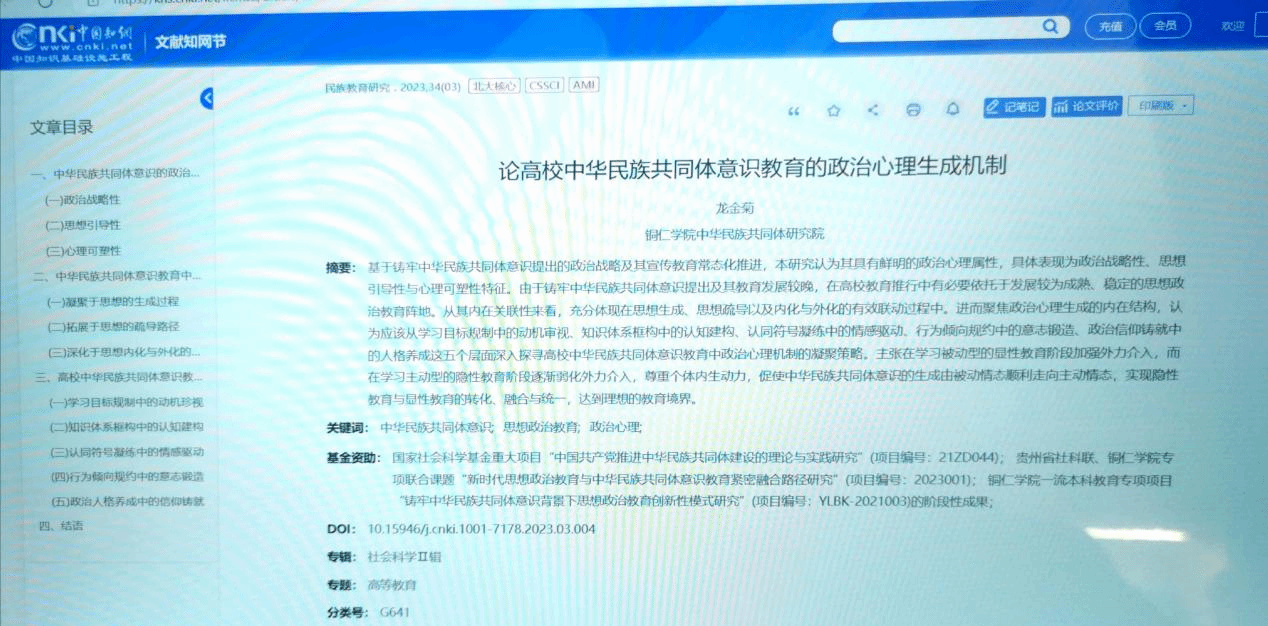 《论高校中华民族共同体意识教育的政治心理生成机制》发表于《民族教育研究》2023年第3期。