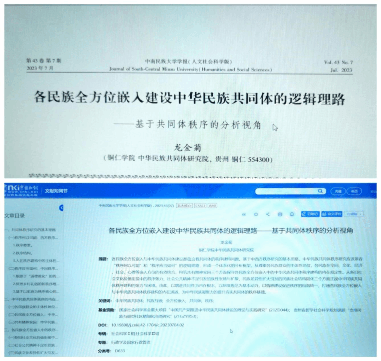 《各民族全方位嵌入建设中华民族共同体的逻辑理路--基于共同体秩序的分析视角》发表于《中南民族大学学报(人文社会科学版)》2023年第7期。