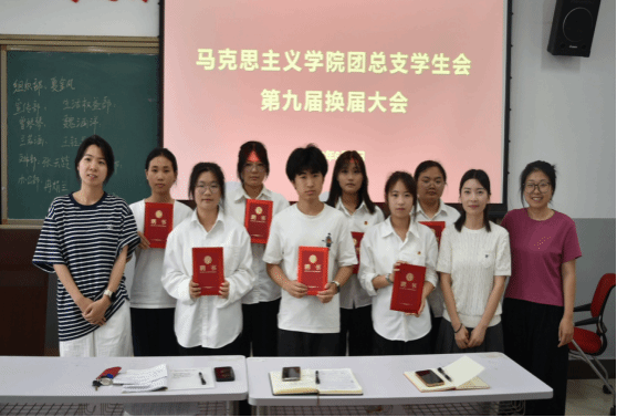 最后,团总支书记迟婕为本次换届大会作总结。她对上一届团总支学生会所取得的工作成果予以充分认可,高度赞扬了他们在学院发展建设、学生服务保障等领域作出的贡献。与此同时,她也向新一届学生会全体成员提出了明确要求,希望各部门能紧密配合、携手共进,秉持强烈的集体荣誉感,强化服务理念,持续拓展校园文化活动的深度与广度。此外,要积极与其他兄弟院系保持沟通交流,汲取先进经验,同时将“小马院,大梦想”的精神内核融入日常工作的每一个细节,齐心协力朝着更高目标奋进。大会最后,迟婕、马青青和王晨一同为新任主席团成员及学生干部颁发聘书,并共同合影留念。