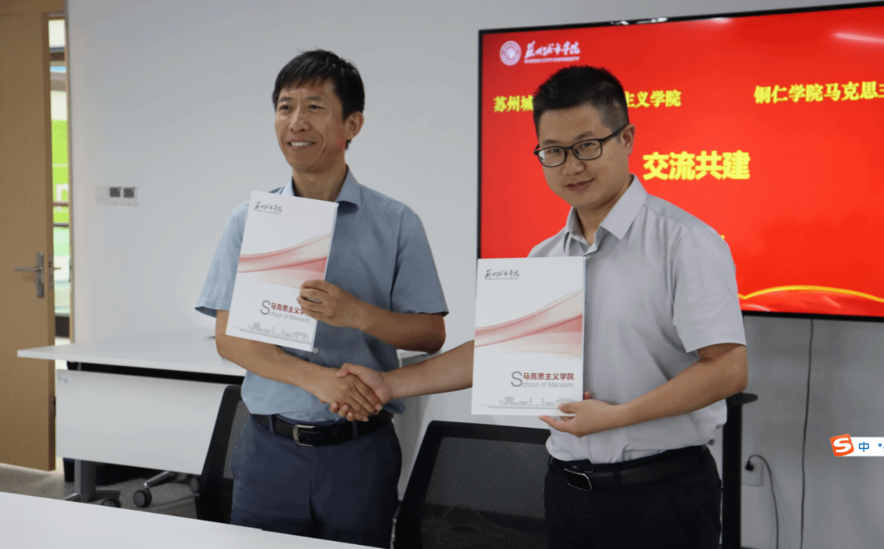 在交流活动中,苏州城市学院马克思主义学院院长田芝健教授致欢迎辞,详细介绍苏州城市学院马克思主义学院情况。随后,赖全教授介绍了美加墨世界杯官方网站马克思主义学院的特色与发展规划,王德召教授分享黔东红色文化研究中心建设成果。双方围绕学科建设、科学研究、思政课程建设、师资队伍建设、人才培养等核心议题,从理论探讨到实践路径展开深度交流。会后,苏州城市学院马克思主义学院与美加墨世界杯官方网站马克思主义学院共同签署了共建合作协议。