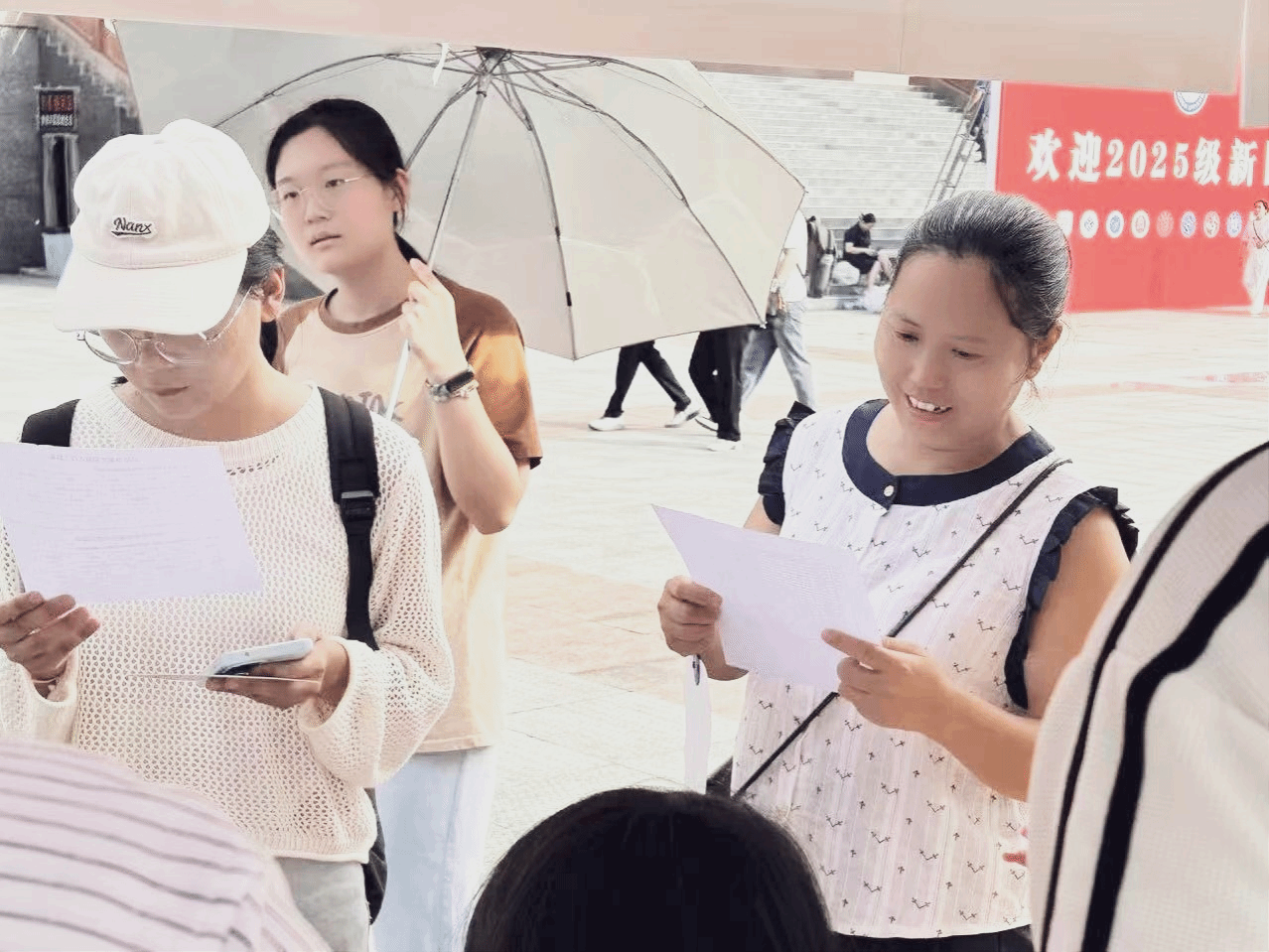 清晨,各迎新点已布置就绪,醒目的学院标识、清晰的流程指引牌与志愿者们的微笑,让新生们感受马院的热情。针对不同生源的需求,我院提前梳理了报到流程,在每个迎新点都安排了志愿者团队。他们身着统一的红色服装,展现出团结有序的精神风貌。他们热情接过新生手中的行李,帮忙搬运行李箱、被褥等物品。同时,他们还耐心解答新生及家长对于报到流程、宿舍分配、课程安排、奖助政策、校园生活等方面的各类疑问,志愿者们结合自身经历逐一细致解答,消解新生的陌生感与困惑。迎新过程中,我院党委书记张江林、党委副书记李兢、副院长赖全等领导来到报到点了解迎新工作的开展情况,与新生及家长进行了亲切交流,充分体现了学院领导对新生的关切,传递出浓浓的希望与祝福。