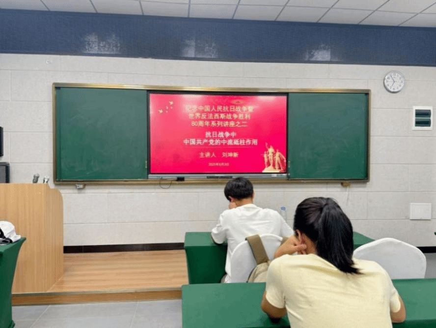 为深切缅怀革命先烈、弘扬伟大抗战精神,在9月3日这个纪念中国人民抗日战争暨世界反法西斯战争胜利80周年的重要历史时刻,美加墨世界杯官方网站马克思主义学院于学科楼604教室成功开展了新学期硕士生思想政治教育课暨“纪念抗日战争胜利系列讲座”第二讲。本次讲座特邀刘坤新老师担任主讲,围绕“抗日战争中国共产党的中流砥柱作用”开展党史学习教育,马克思主义学院全体硕士研究生参加。