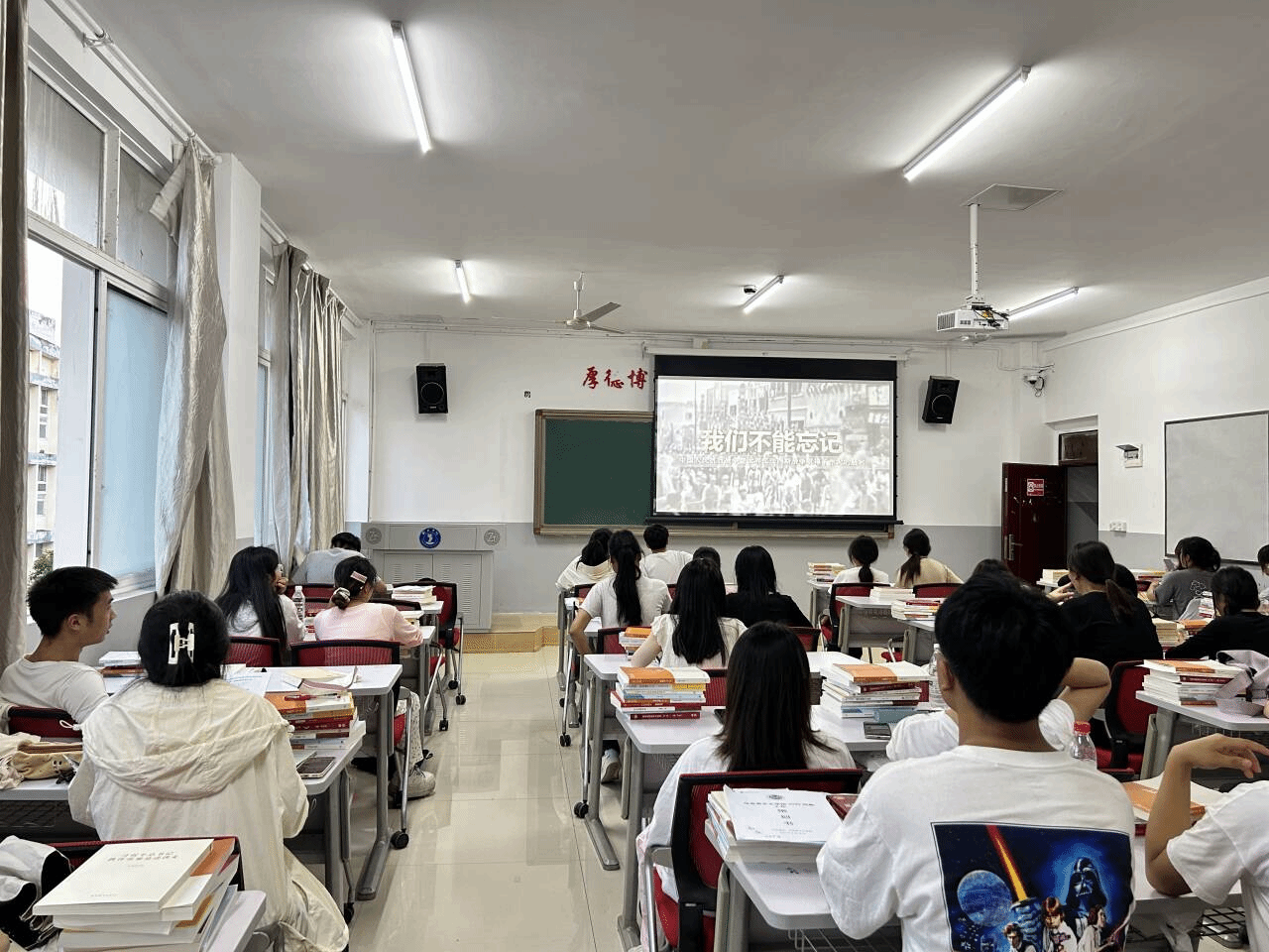 8月31日晚,各班级在辅导员的引领下,收看了贵州省2025年秋季学期“开学第一课”——《书灯不灭,烛照复兴》。视频开篇由“我们不能忘记”六字,把中国式现代化的宏大叙事与青年成长进行了紧密结合,使同学们更为深刻地体悟到“强国复兴有我”的时代使命。