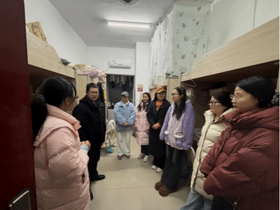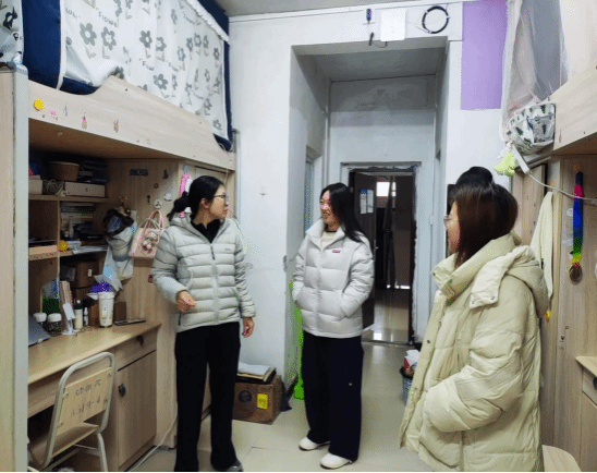 走访过程中,院领导与辅导员分别深入到每一间学生宿舍与同学们亲切交流,让大家在寒冬中感受到学院的温情与关爱。“暖冬行动”小组成员与同学们面对面交流,重点关照困难学生过冬需求,全覆盖开展冬季公寓安全与防诈骗宣传,同时推进期末诚信考试教育宣传与学生寒假留校情况摸排。老师们还询问同学们的御寒保暖物品以及室内热水温度等情况;向同学们讲解冬季用电安全知识,强调严禁使用违规电器,提醒大家离开宿舍时务必关闭电源,同时就防电信网络诈骗、消防安全、交通安全、冬季传染病预防等内容进行细致叮嘱,引导同学们提高安全防范意识。