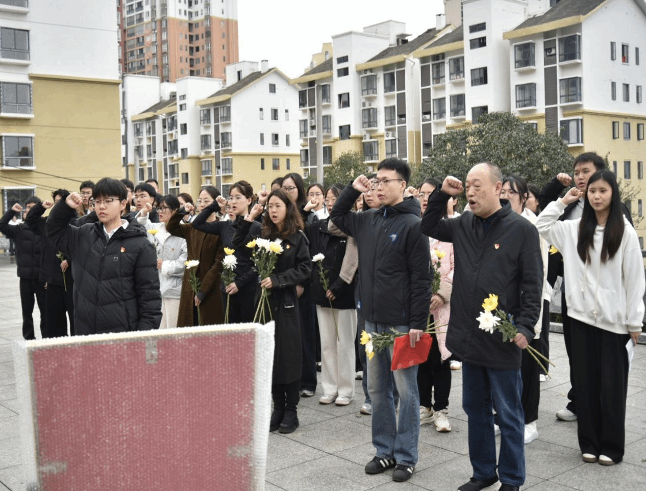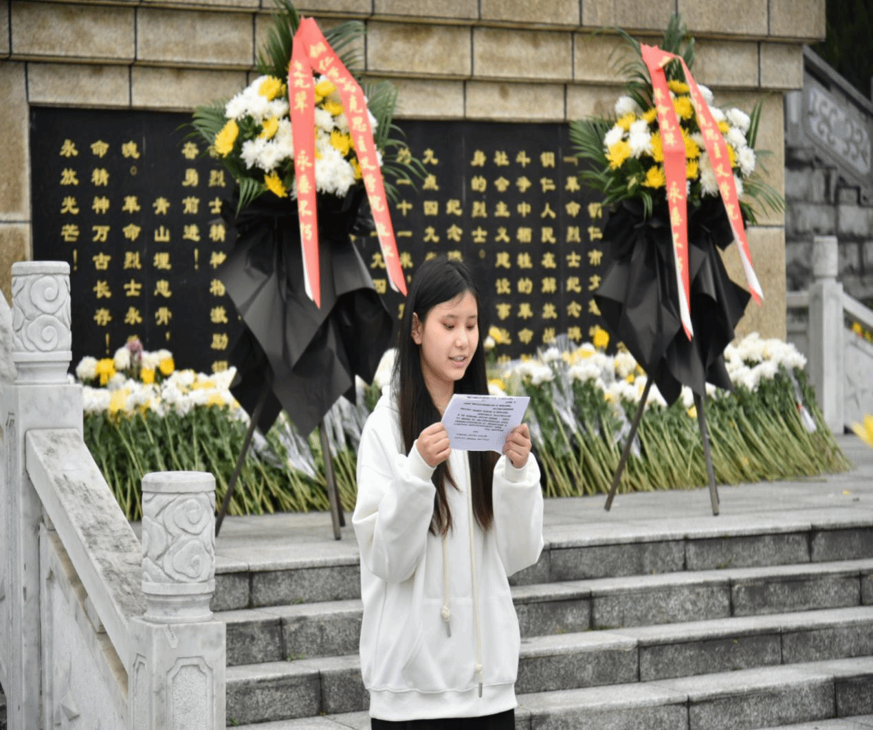 活动伊始,全体党团员面向烈士纪念碑肃立默哀,追思先烈们用生命铸就的不朽功勋。党员代表张倩介绍了文笔峰烈士陵园的历史沿革与英烈事迹,让红色历史在讲述中鲜活传承,让英烈精神在铭记中代代相传。党员代表陈佳谣带领全体党员重温了入党誓词,激励大家以先烈为榜样,坚守初心、勇毅前行。随后,学生代表缓步上前,向烈士纪念碑敬献花篮,全体师生向革命烈士纪念碑敬献菊花,祭扫、擦拭墓碑。
