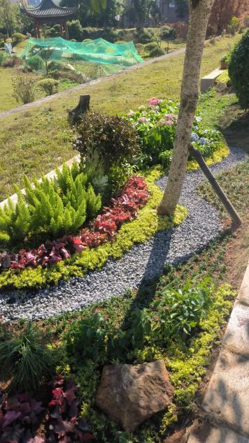 设计简介:以“彩矾织梦,木月生姿”为主题,借矾根的斑斓色彩织就梦幻底色,以树木的自然姿态晕染月夜般的静谧氛围。花境以矾根的红、紫、金、绿等色彩层叠铺展,搭配枝叶舒展的乔木/灌木形成高低错落的层次,如同将月光揉进植物的线条里。观者置身其中,既能被矾根的缤纷唤醒视觉愉悦,又能随树木的舒展沉下心绪,仿若闯入被月光轻裹的梦境,在自然色彩与姿态的交织里,寻得松弛与诗意。
