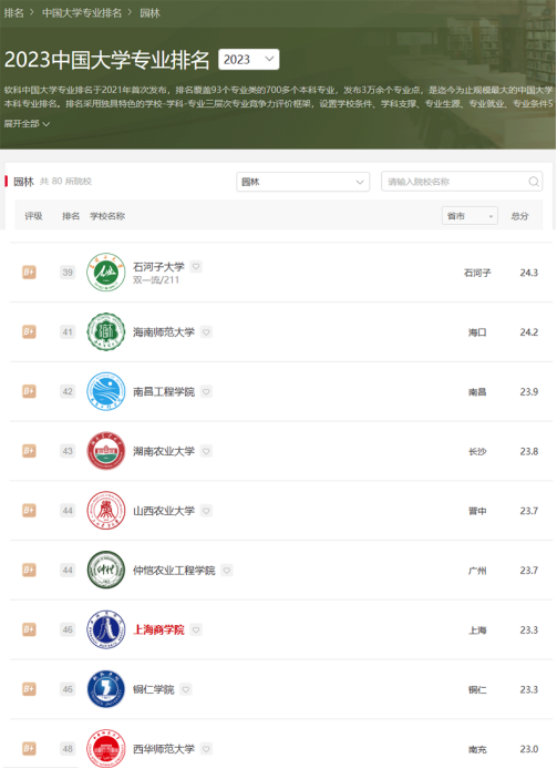 6月15日,高等教育专业评价机构—上海软科教育信息咨询有限公司发布2023年中国大学专业排名,世界杯官网园林专业在上榜的80所院校中排名46,得分23.3分,与广西大学、沈阳农业大学、中国农业大学等均属B+层次。此次排名是按照学校条件、学科支撑、专业生源、专业就业、专业条件5个指标类别,共25项测量指标来检验专业的办学水平。