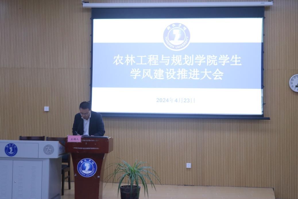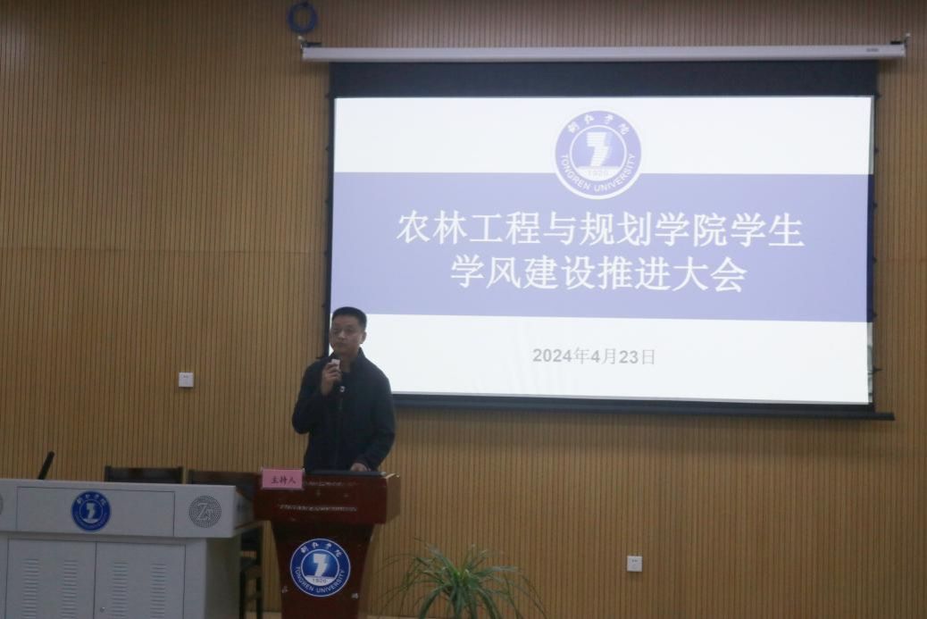 为深入学习领会党的二十大精神,认真贯彻落实习近平总书记关于建设教育强国重要论述,深入推进“三全育人”,切实加强学生学风建设,提升人才培养质量,推进养成教育,打造风清气正、学风优良的育人环境,促进学生德智体美劳全面发展。4 月23日,我院在博思楼206开展2024年学生学风建设推进大会。院党委书记李建新、院长米小其、副院长张俊波,院副科级以上干部、教研室主任(专业负责人)、全体辅导员(班主任)、学生党员、学生会干部、各班级学生代表参加此次大会。大会由院党委副书记蒋旭军主持。