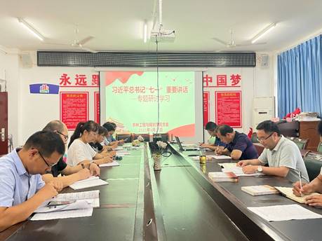 9月17日,农林工程与规划学院理论学习中心组召开习近平总书记“七一”重要讲话专题研讨学习会,党委书记李建新主持,理论学习中心组全体成员参会。