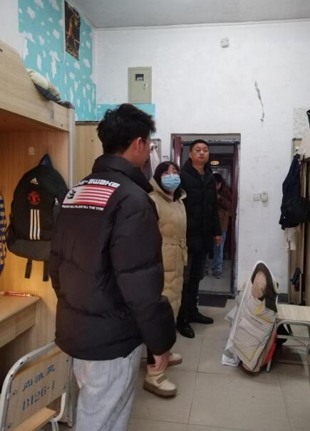 为深入了解学生冬季过冬情况,12月26日,我院党委副书记蒋旭军学生科长戴婧婧,全体辅导员(班主任)一行深入学生寝室开展“情谊暖寒冬,冬季送温暖”走访慰问活动。