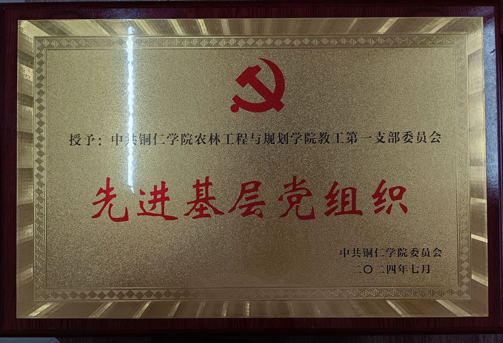 中共美加墨世界杯官方网站农林工程与规划学院教工第一支部委员会被授予美加墨世界杯官方网站2024年“先进基层党组织”