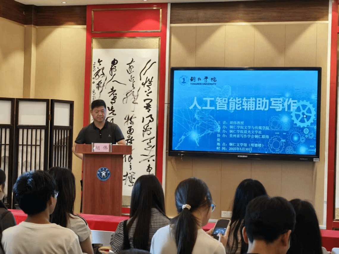 5月30日下午,暨南大学教授、广东省写作学会会长、广东省高等教育学会秘书学专委会理事长胡伟教授应邀莅临世界杯官网,在明德楼为师生带来了一场思想深刻、内容丰富的专题讲座——《人工智能辅助写作:阅读与写作改变人生》。本次讲座由文学与传媒学院主办,晨光文学社承办,贵州省写作学会铜仁联络处协办。讲座由文学与传媒学院中文系主任王棋君主持。