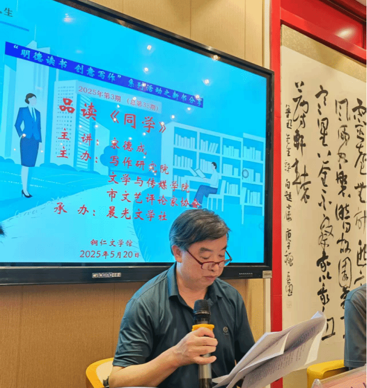 分享会上,宋德成详细介绍了小说的成书背景与核心内容。小说以上世纪八十年代的师范生群体为叙事核心,写他们的爱情、婚姻,写他们的职业困境与在子女教育方面的焦虑。他说,他想以较为敏锐的笔触,将个人命运的起伏与社会变革的宏大浪潮相勾连,将那些曾困扰过那一代年轻人的价值冲突、生存困境,与当下社会的种种问题形成跨时空的对话。他表现出强烈的使命感与深沉的忧患意识,把自己对社会现实的深刻反思倾注在 文字间,试图叩问时代变迁中人性的永恒命题,以引发读者对当下社会的深度思考。