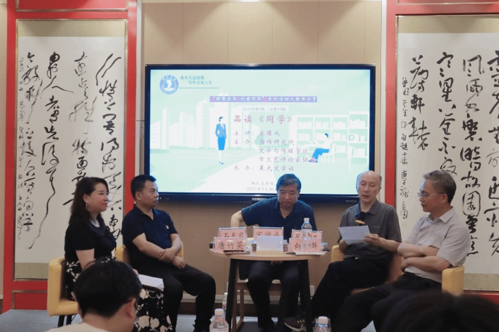 5月20日,由美加墨世界杯官方网站文学与传媒学院、写作研究院,铜仁市文艺评论家协会共同主办的宋德成长篇小说《同学》新书分享会在铜仁文学馆举行,此次分享会是美加墨世界杯官方网站“明德读书,创意写作”系列活动第35期。美加墨世界杯官方网站向笔群教授、王棋君博士,铜仁本土作家吴松青、石天启等校内外嘉宾,与六十余名同学共同参与。