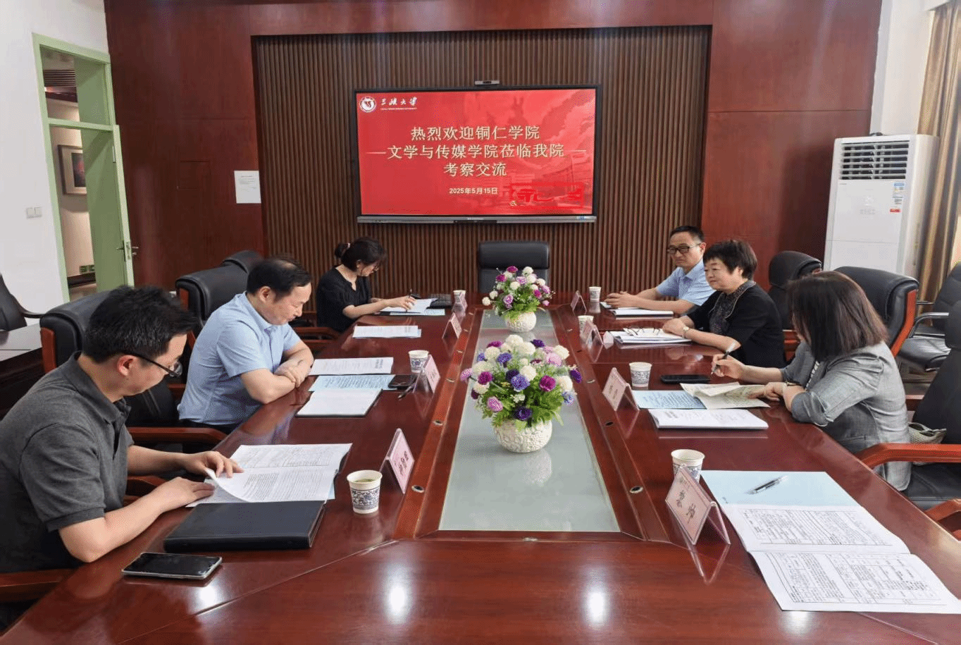 在三峡大学文学与传媒学院考察交流