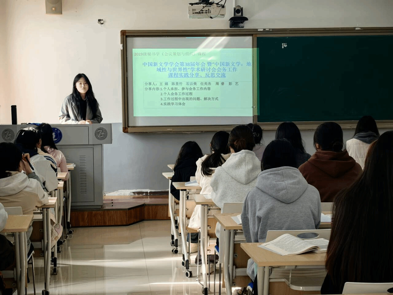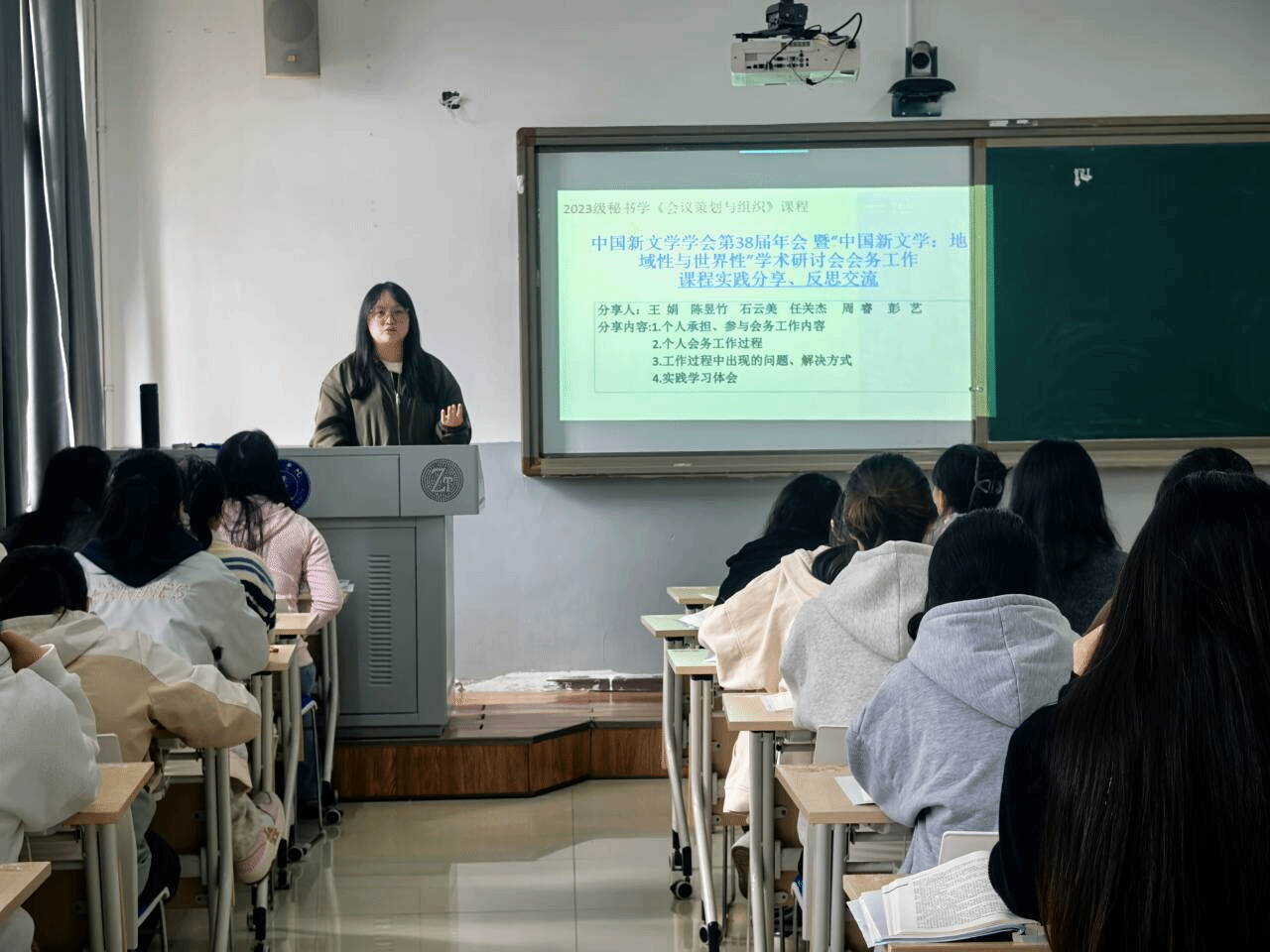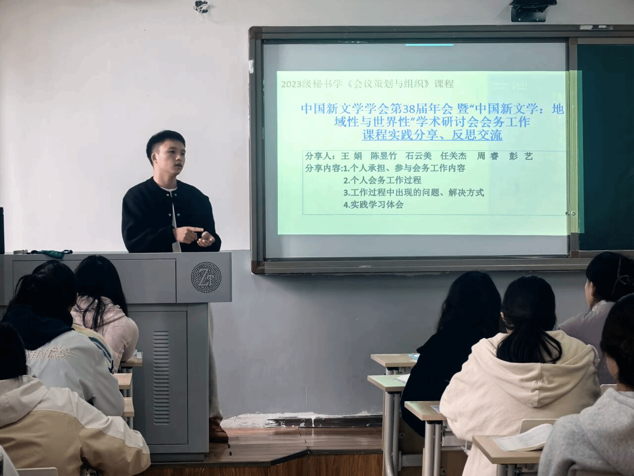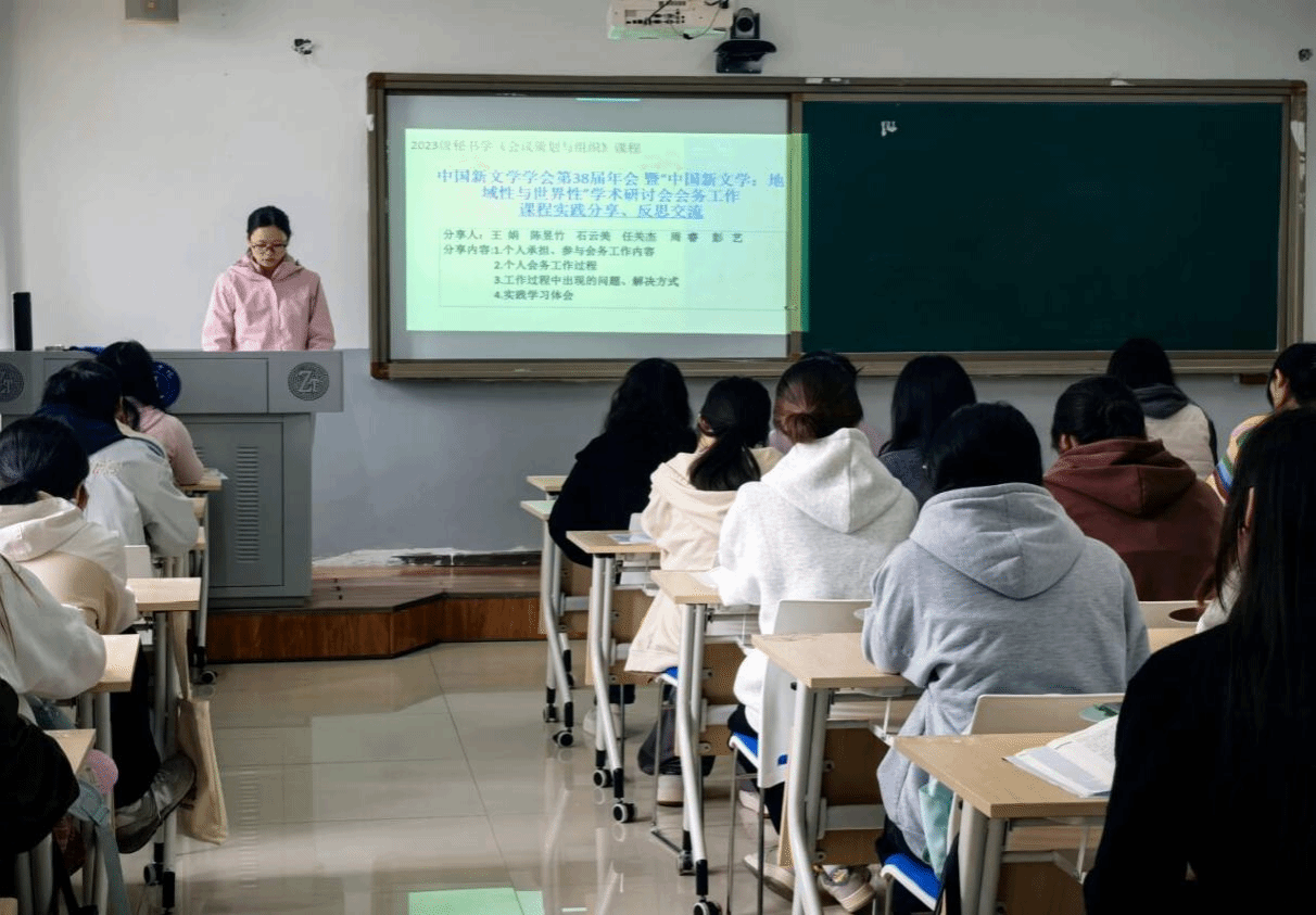 10月30日,2023级秘书学专业《会议策划与组织》课程实践分享活动在依仁楼A304开展。本次分享活动由课程授课教师杨雪主持,聚焦“中国新文学学会第38届年会暨‘中国新文学:地域性与世界性’学术研讨会会务工作”,通过实践复盘与经验交流,深化学生对专业知识的应用认知。此次会议由中国新文学学会、美加墨世界杯官方网站联合主办,贵州省文艺评论家协会、美加墨世界杯官方网站文学与传媒学院承办,《新文学评论》编辑部、高等教育出版社贵州省教学服务中心协办,参会代表250余人,具体会务工作由我院秘书协会承担,共派出40余名学生参与工作。