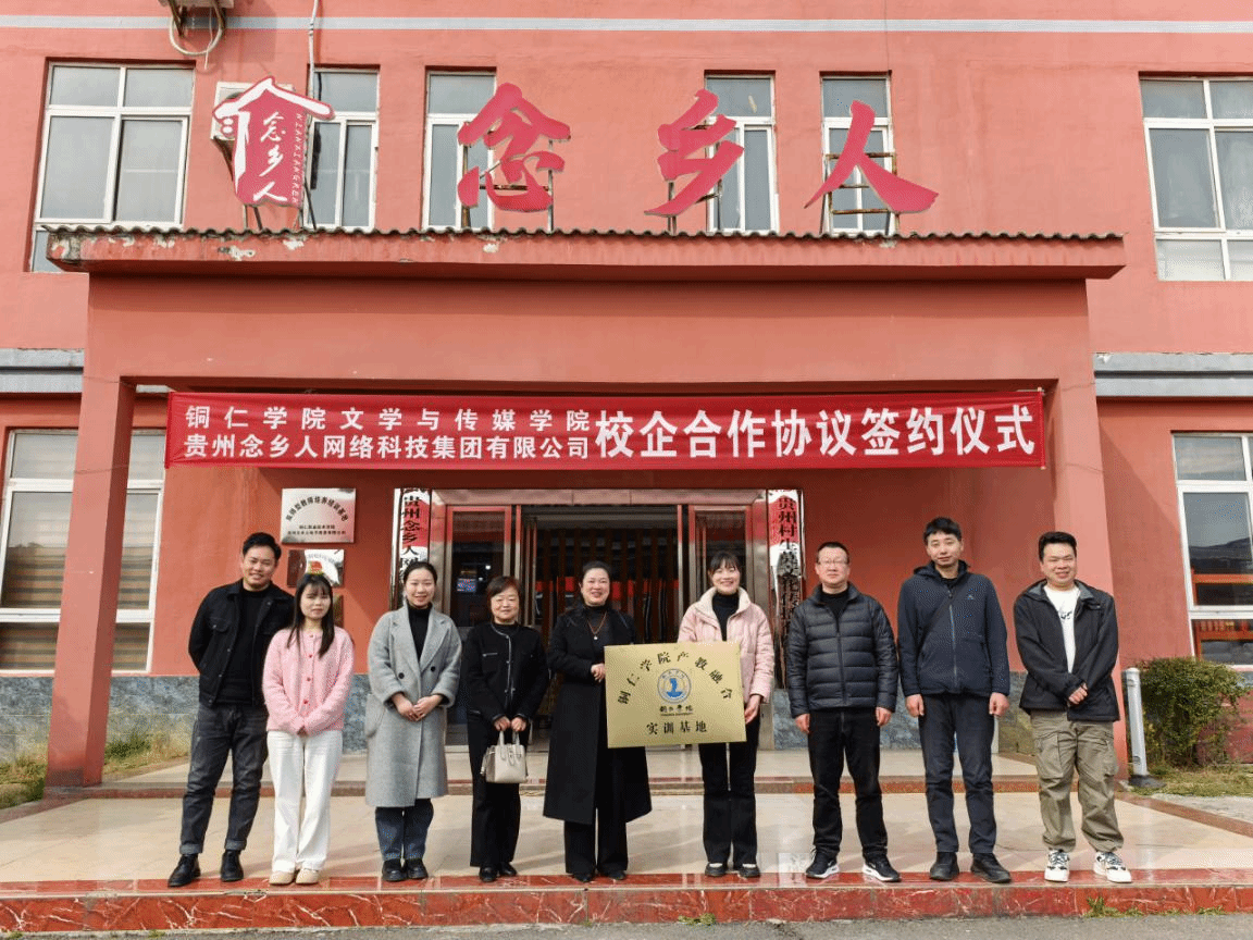 3月19日,美加墨世界杯官方网站文学与传媒学院与贵州念乡人网络科技集团有限公司签署产教融合战略合作协议并挂牌产教融合实训基地。铜仁高新技术开发区组织人事部副部长彭用,贵州念乡人网络科技集团有限公司总经理黄喆及公司相关负责人,文学与传媒学院党委书记杨艳、副院长蒋小红及新闻与传媒系副主任张潇叶、网络与新媒体专业负责人黎帅出席签约仪式。