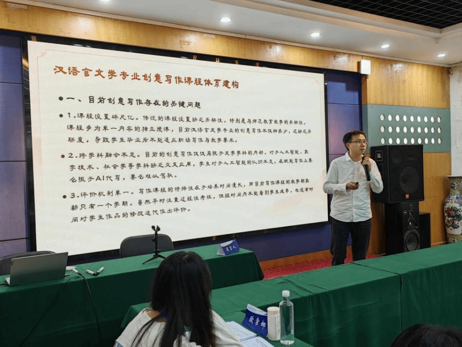 我院四位教师积极参与并作了发言,庄鸿文探讨 “大语言模型背景下中文学科发展:问题和前景”,王棋君分析 汉语言文学专业创意写作课程体系建构”,晏武芳提出 “数智时代的文学创作:对作家个人体验的重新召唤”,唐竹英则分享 “人工智能赋能大学写作教学的路径与实践研究”,得到现场同行的关注与认可。受大会主办方委托,庄鸿文在闭幕式上对第三分论坛研讨进行总结汇报。