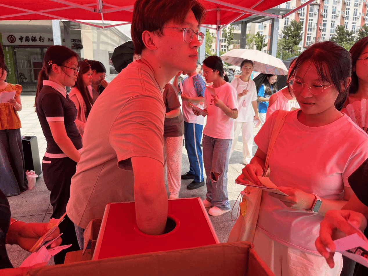 活动包括普通话法律法规、政策宣讲,趣味断句,句子诵读拼图,形似字辨音,趣味造句,发放宣传手册等多个环节,着重从辨字正音、趣味谐音梗、断句对语义的影响和“句子拼接+诵读”等方面设计活动内容,形式多样,融知识性、趣味性、互动性于一体,活动规则简单,答对问题即可参与抽奖获得奖品。活动现场人头攒动,师生情绪高涨,踊跃参与,推普氛围浓厚。