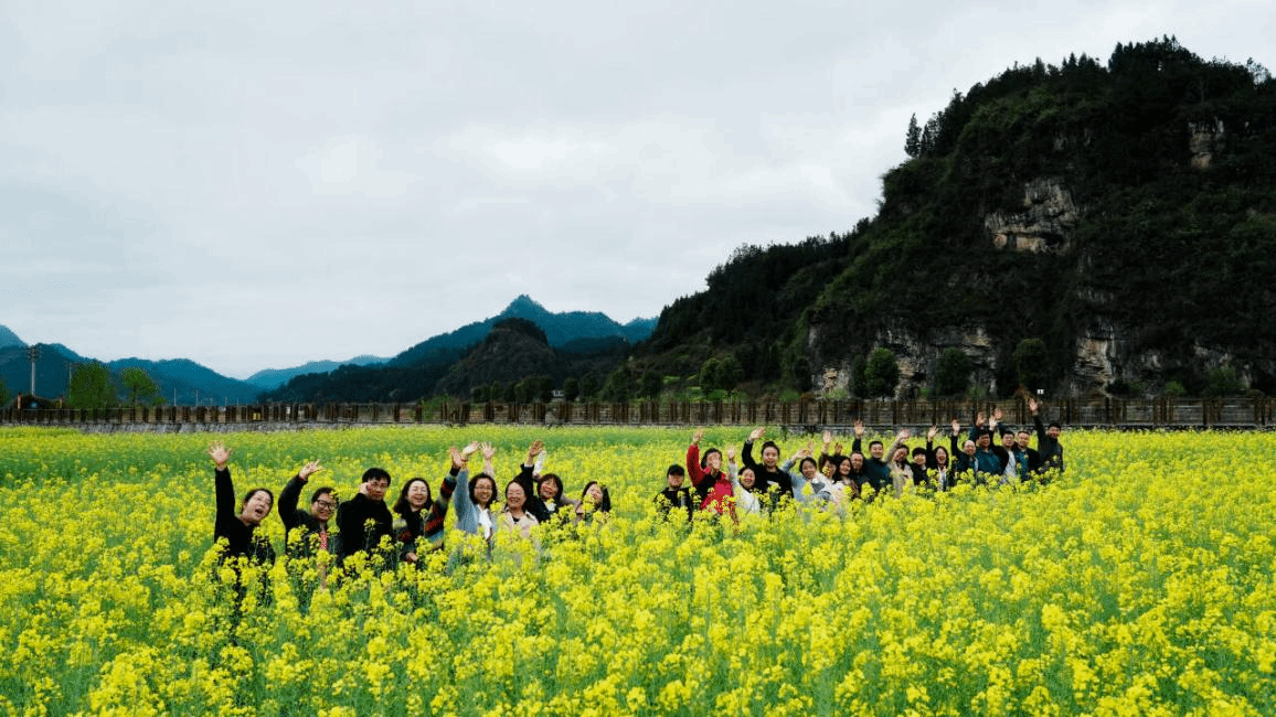 在瓦屋乡工作人员引领下,大家先后参观了克兰寨古建筑群、瓦屋乡愁馆、刘氏宗祠,感受到瓦屋乡的古朴与宁静。瓦屋乡万亩金灿灿的油菜花田与错落有致的村寨相互映衬,勾勒出一幅美丽的田园乡村画卷。