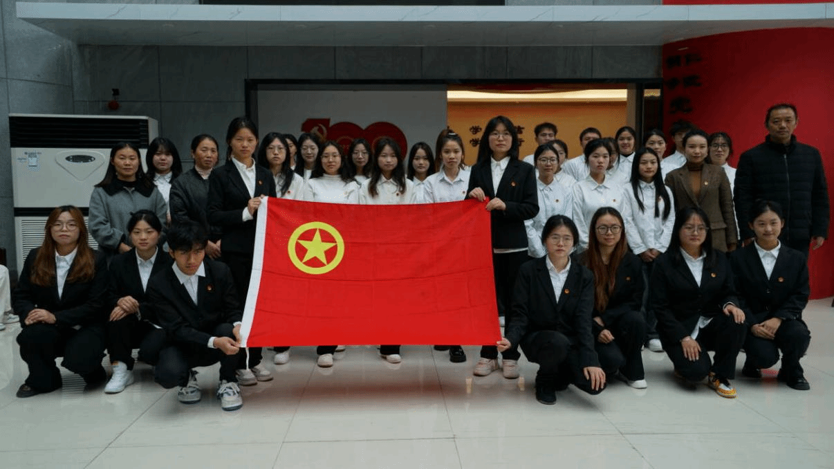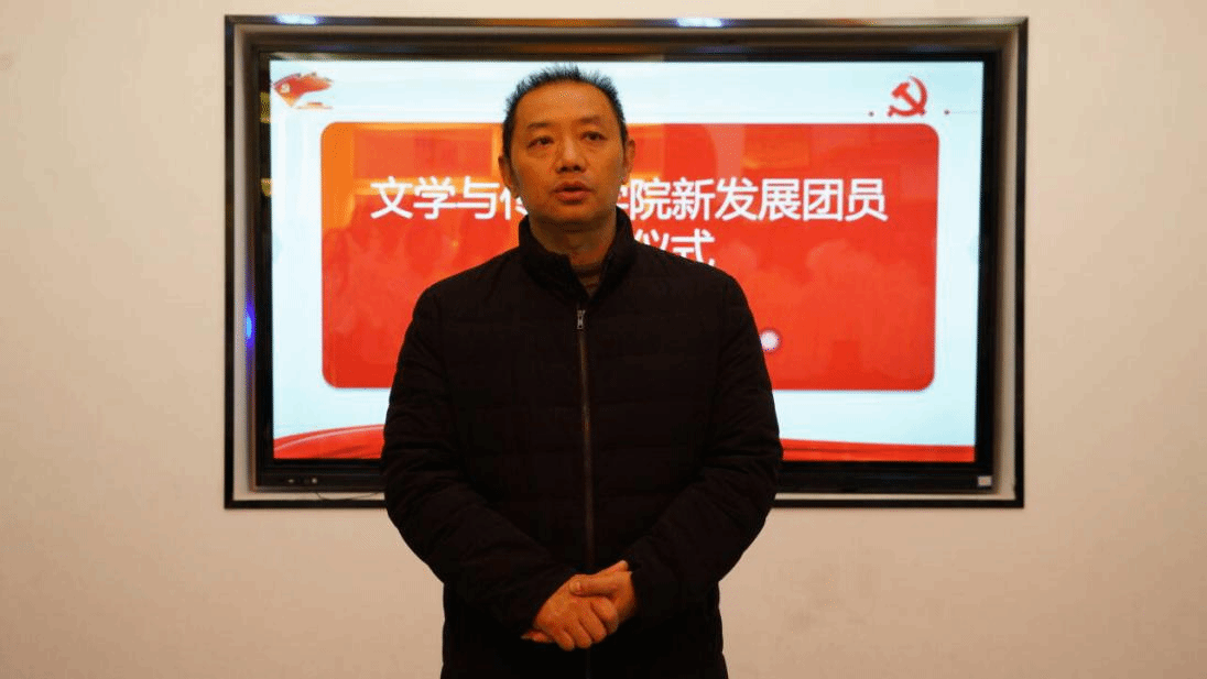 文学与传媒学院副院长张建刚、学生科负责人杨蓉、团总支负责人杨梦阳、学生党支部负责人杜晓霞以及27位新发展团员共同参与本次仪式。入团仪式上,四位老师为新发展团员佩戴团徽,组织部左泽宇同学带领全体新团员们庄严宣誓23级网络与新媒体班龙纹超同学作为新团员代表发言。