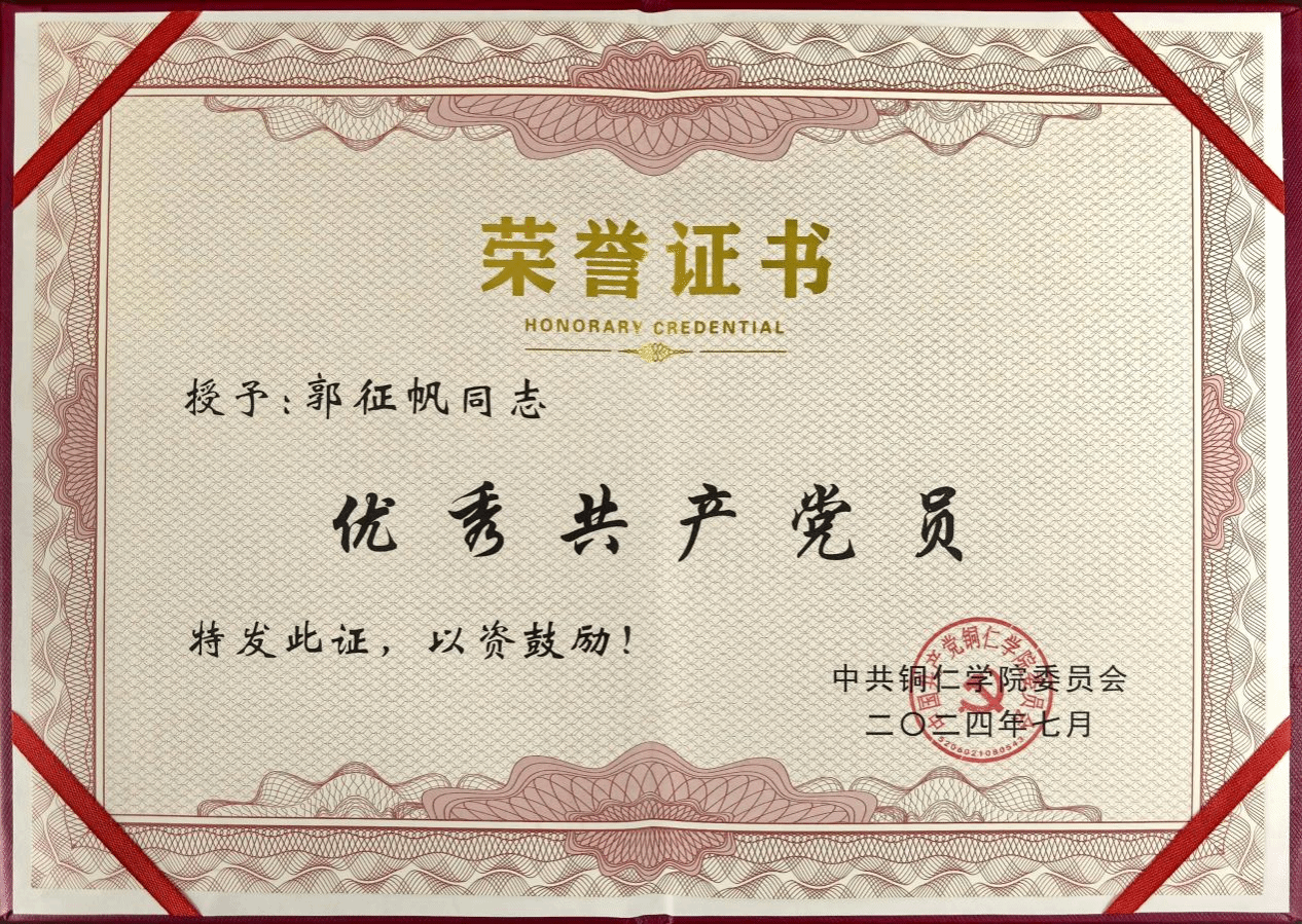 郭征帆2001年加入中国共产党,2002年参加工作,现任院文学与传媒学院教工第一党支部书记、秘书学教研室主任、副教授,是贵州省地方史专家库入库专家、铜仁市社区教育专家。二十多年如一日,坚守在教书育人的第一线,勤于探索,勇于创新,成效显著。曾获贵州省第三届高校辅导员年度人物、铜仁市优秀教育工作者、铜仁市委教育工委优秀共产党员、美加墨世界杯官方网站教学名师、美加墨世界杯官方网站优秀共产党员、美加墨世界杯官方网站优秀教师等荣誉。他热爱学生,为人师表,积极工作,从2010年起至今不间断担任班主任工作长达14年,所带的班级荣获了贵州省先进班集体、铜仁市优秀团支部等省市荣誉。