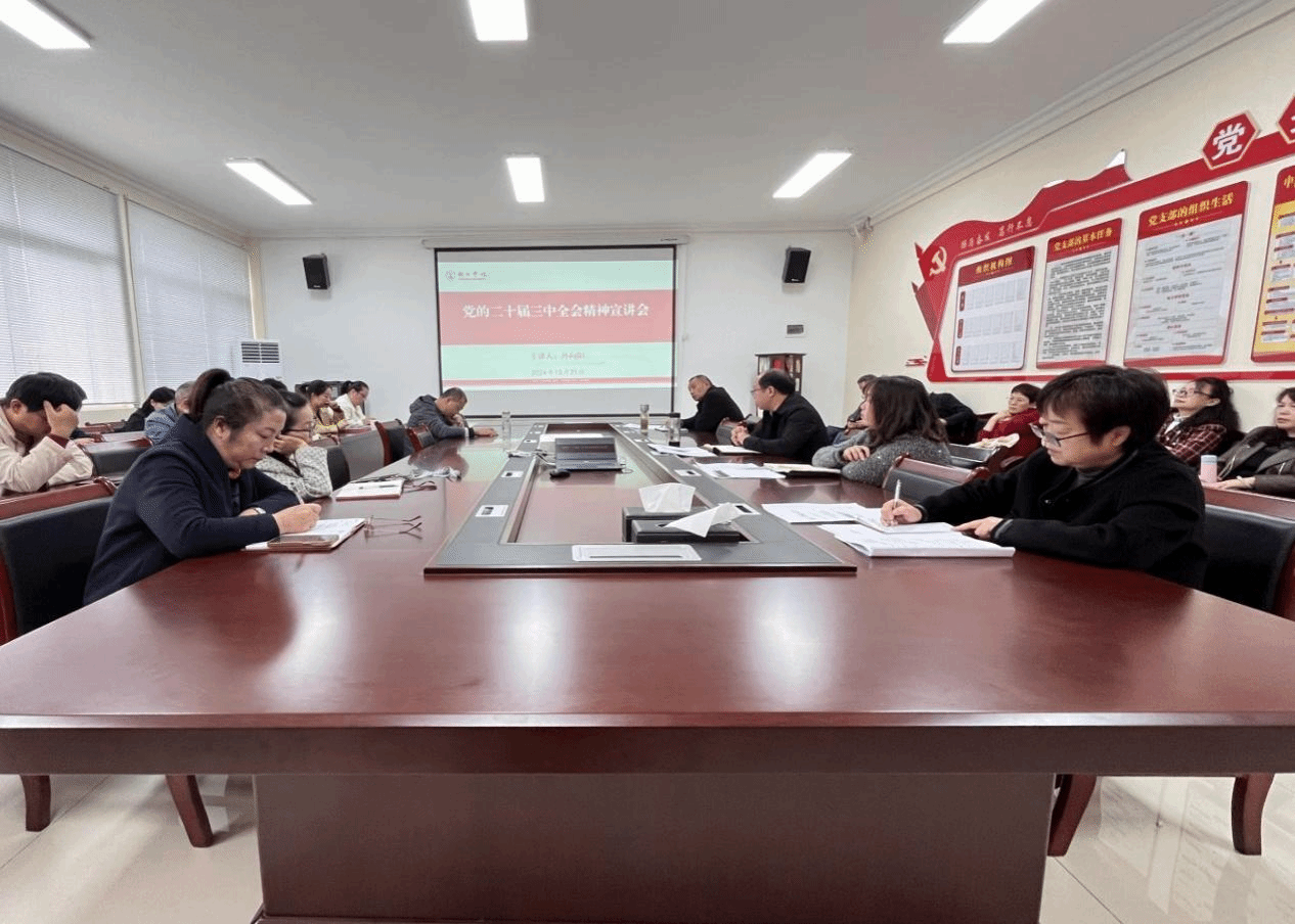 10月21日下午,我院在会议室举行党的二十届三中全会精神宣讲,院党委书记孙向阳作宣讲报告。全体教师党员、学生党员参加宣讲报告会。