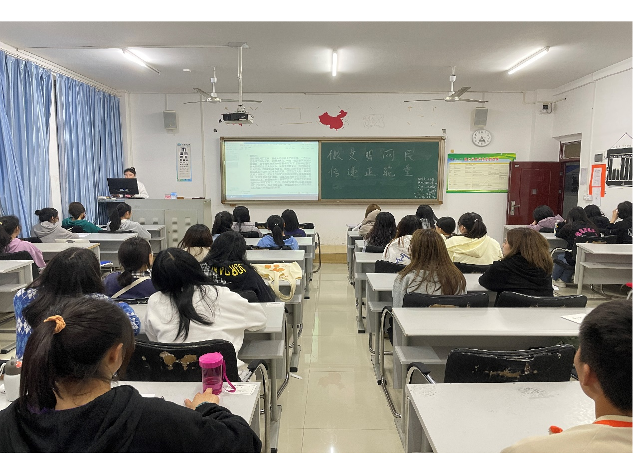 各班围绕主题展开了相关活动。如2019级秘书学班观看了识别网络谣言的宣传视频;2021级汉语言(二)班通过宣讲真实案例让同学们了解了健康文明上网的重要性。