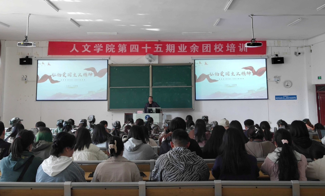 11月25日,人文学院党委委员、副院长白俊骞为人文学院第四十五期业余团校学员专题宣讲党的二十大精神。