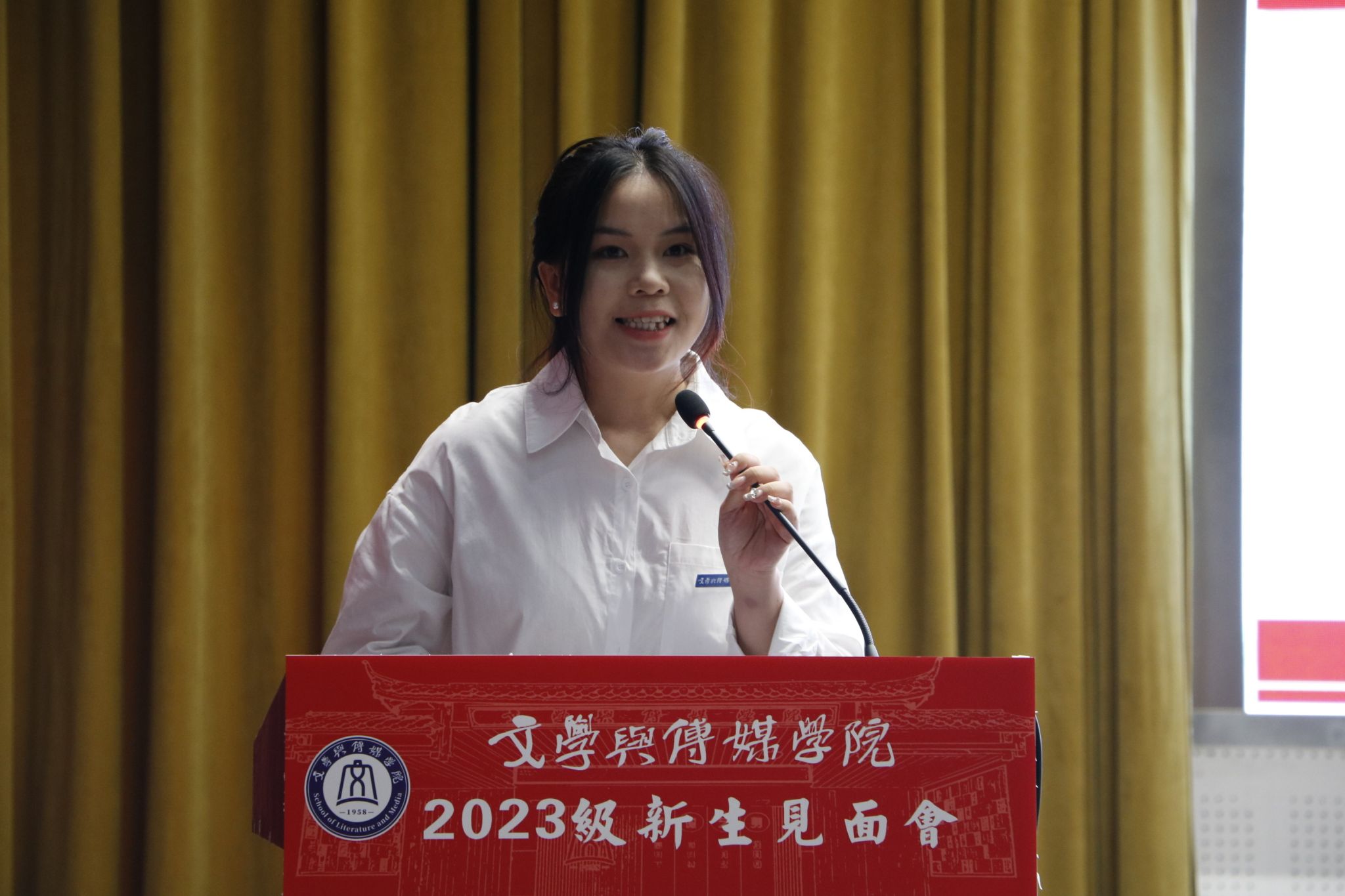 孙向阳最后说,全体文传学子要在未来四年的光影流转中,与这个美好的时代同频共振,用心去触摸时代的脉搏,用力去探索人文的奥秘,用情去感悟中华优秀传统文化的博大与精深,以兼容并包的心态,海纳百川的胸怀,去拥抱美好的大学生活和这个未知的世界!